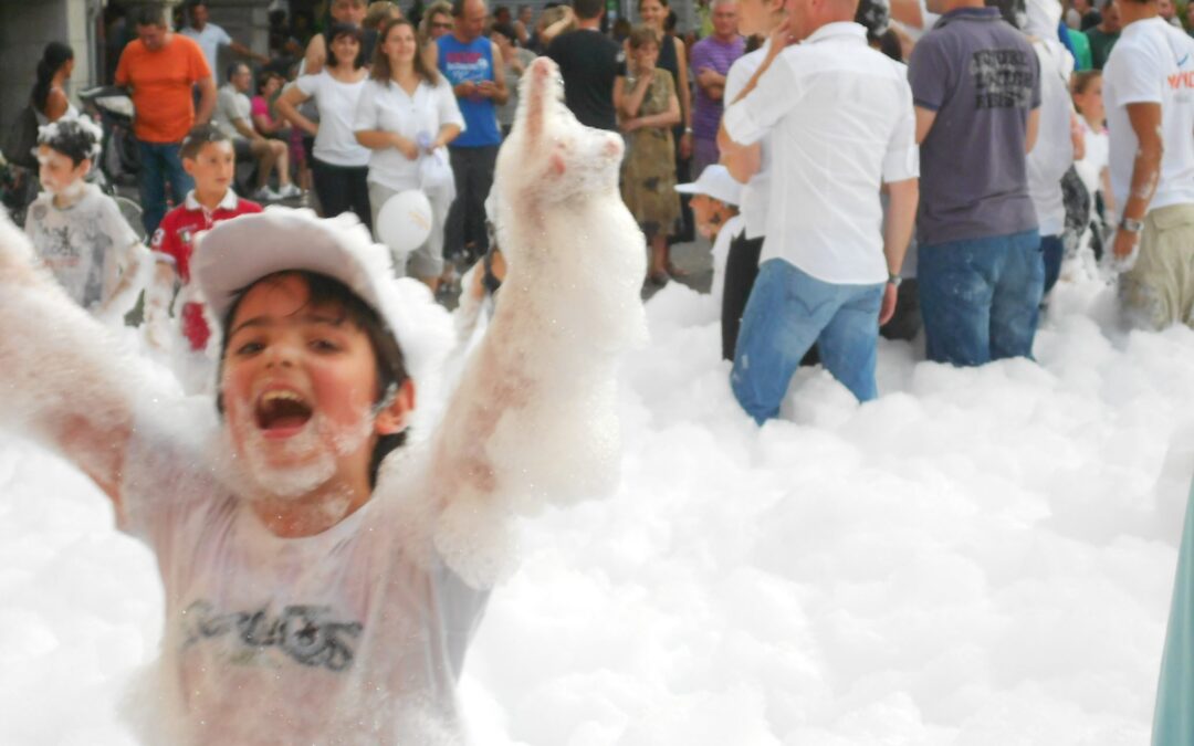 marketing strategico ragazzi e ragazze, bambini e bambine ballano in mezzo alla schiuma in piazza a Cividale
